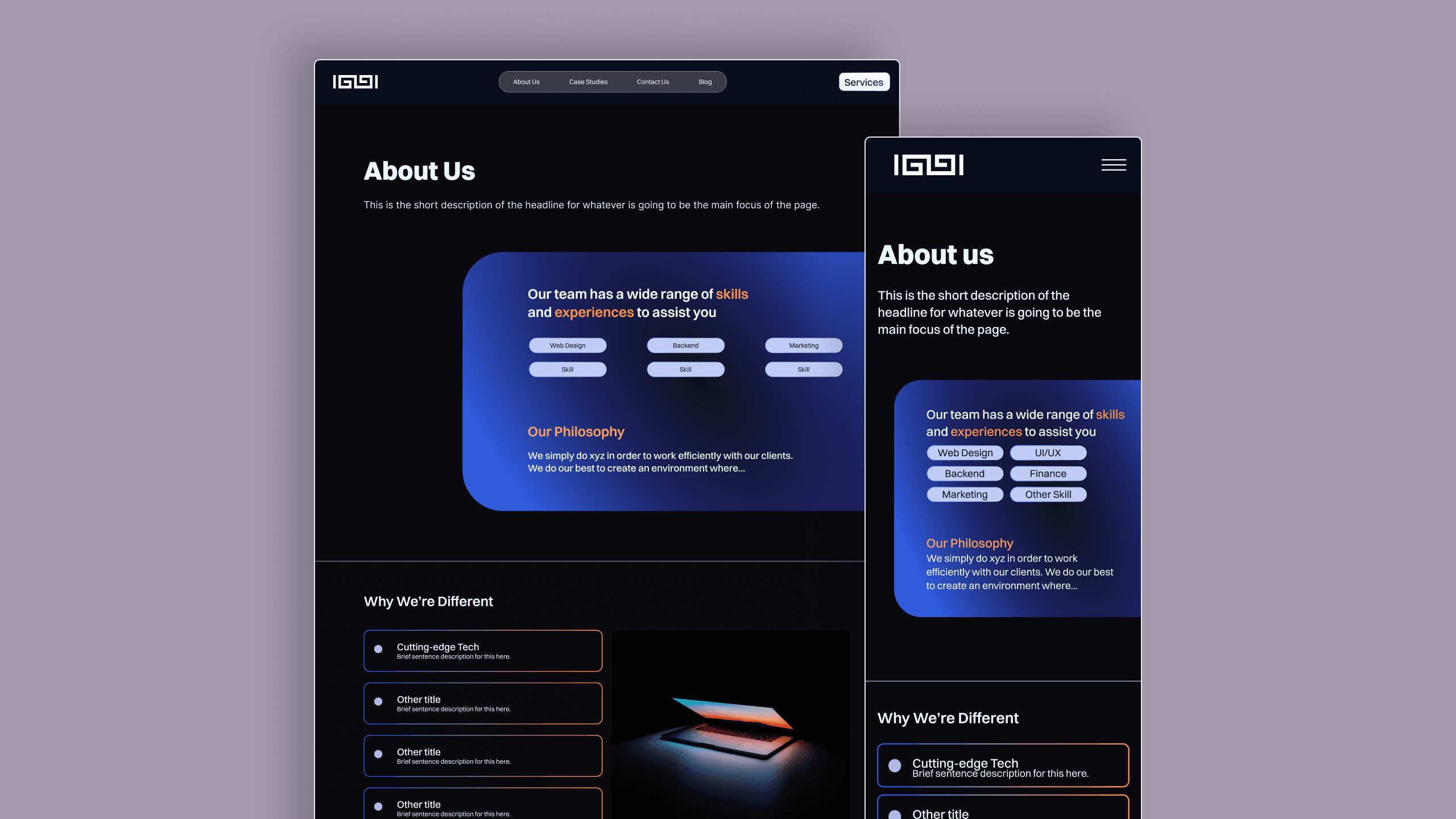 A website showcasing services offered by a custom software startup agency.