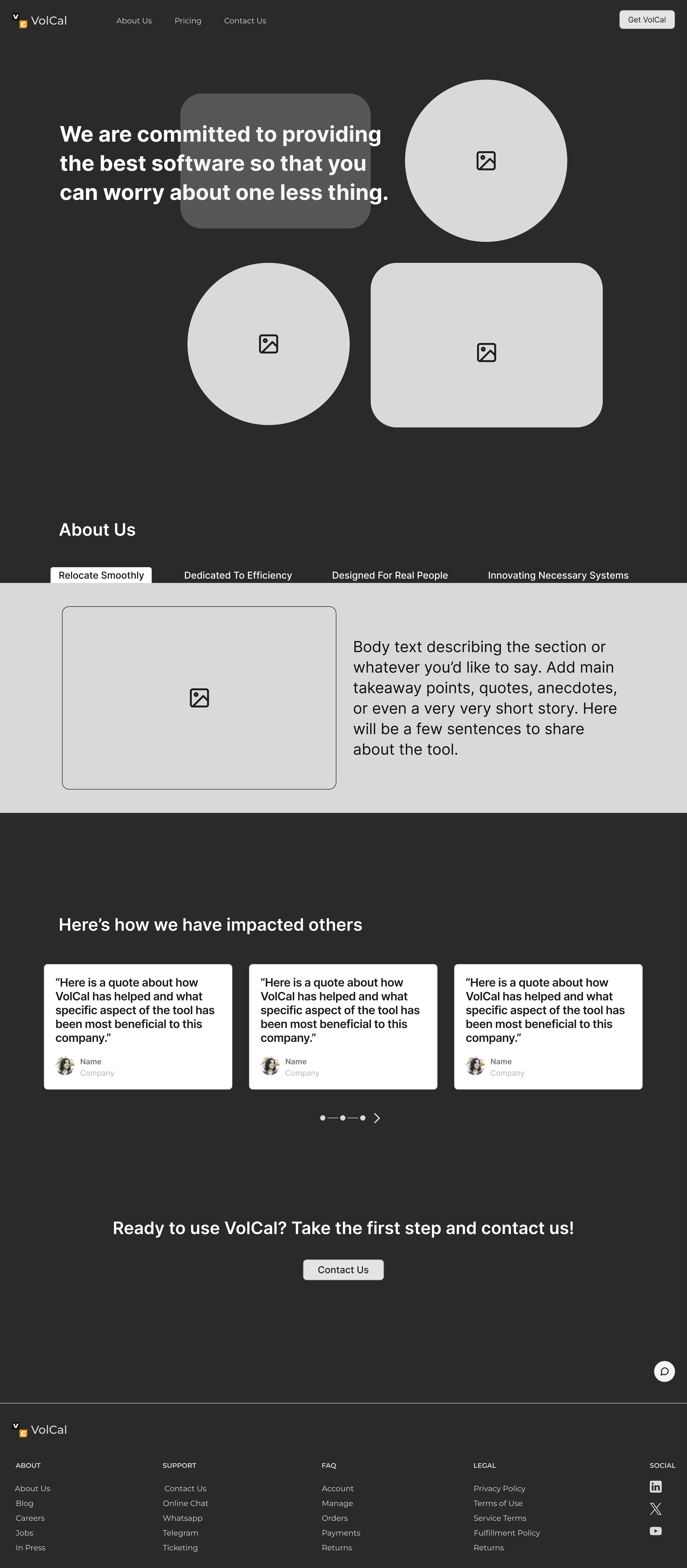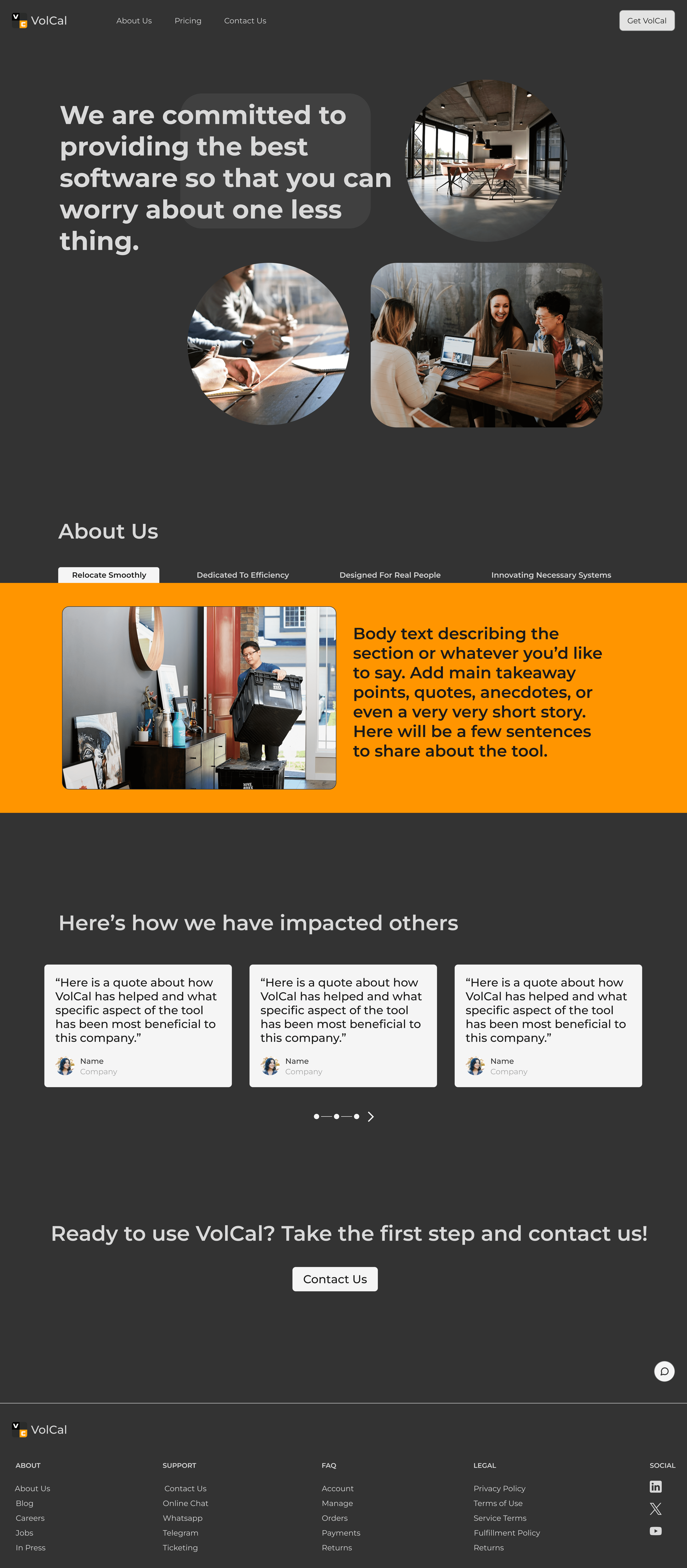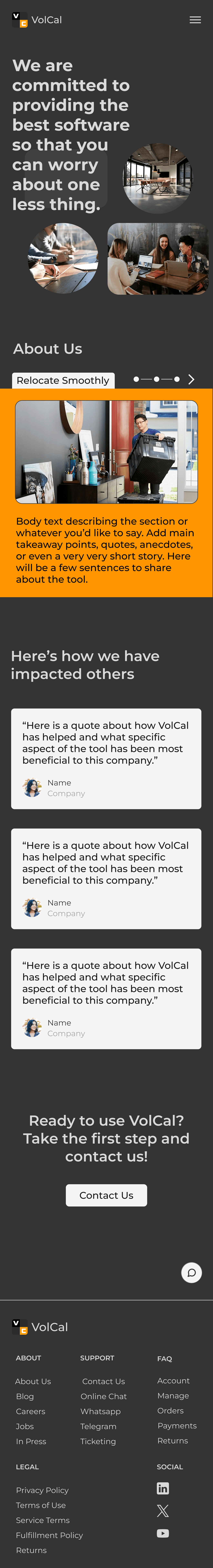 The goal of this marketing website was to highlight the benefits of the application and show the user, whether it be for personal or business use, how it could be helpful for them. We wanted to create a website that kept the theme of the application in the forefront as well as making it easy for the user to navigate in order to discover if this application is something that would work for them.